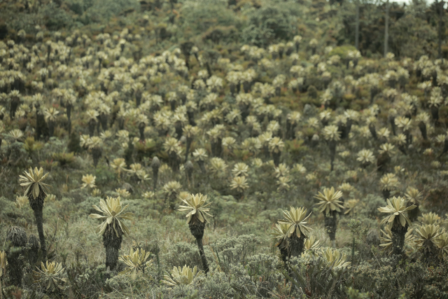 - Frailejones (Espeletia spp.): Característicos de los páramos y vitales para la retención de agua.